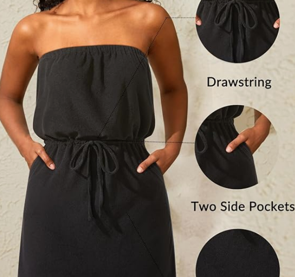 The strapless design of this cover-up offers a sleek, modern appearance that beautifully complements any swimsuit. The drawstring waist allows you to adjust the fit to suit your body shape, ensuring a comfortable and flattering silhouette. Whether you’re looking to transition seamlessly from the water to the lounge chair or need a stylish option for a casual summer day, this cover-up delivers both style and function.